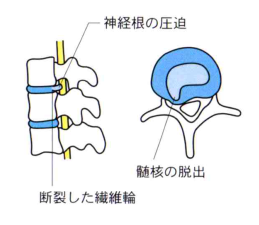 または脱出して脊髄神経を圧迫するようになった状態を椎間板ヘルニアといいます。